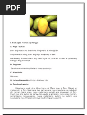 Alamat ng Mangga Version 1 Noong araw ang mga punong tanim ni Tandang Isko ay pare-pareho lamang ang bunga. Itoy maliliit at ang tawag dito ay pahutan. Alamat Ng Mangga Buod Mayroong isang malupit na hari sa isang kaharian.
